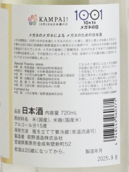 2015年に誕生したユニークな発想の日本酒が、今年で節目の10周年を迎えます。10月1日は「日本酒の日」であり、同時に「メガネの日」でもある特別な日。全員がメガネを愛用する蔵人たちが、レンズの曇りと格闘しながら仕上げた一本です。